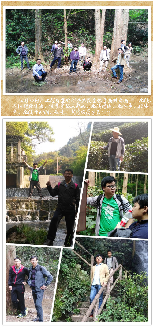 4月12日,在公司精心組織安排下,工程部全體同事出發(fā)至位于西湖之西——九溪,進(jìn)行體驗(yàn)生活,徒步穿越五云山、九溪煙樹、九泓亭、理安寺、九溪十八澗、龍井,共同感受春天。