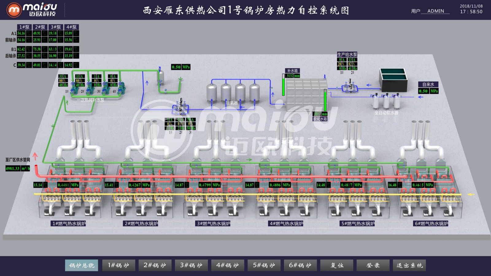 鍋爐、水泵等設(shè)備運(yùn)行的實(shí)時(shí)顯示和運(yùn)行記錄;
